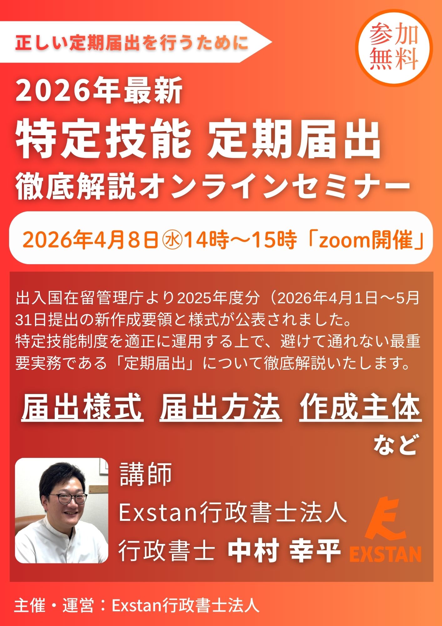 そんな皆様を後押しすべく、Exstan行政書士法人が主催するオンラインセミナー開催のお知らせをいたします。